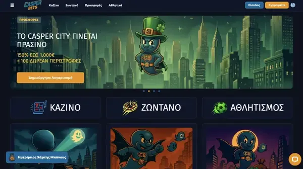 Καλώς ήρθατε στο CasperBets Casino, που λανσαρίστηκε το 2025 υπό την Equinox Holding N.V. Δημιουργήσαμε τον ιστότοπό μας για παίκτες που θέλουν μεγάλη λίστα παιχνιδιών, πρακτικές επιλογές μπόνους και ταμείο που υποστηρίζει EUR και δημοφιλή e-wallets στην Ελλάδα. Σε αυτή τη σελίδα, εξηγούμε πώς λειτουργούν οι προσφορές μας, τι μπορείτε να παίξετε και πώς γίνονται οι καταθέσεις και οι πληρωμές.