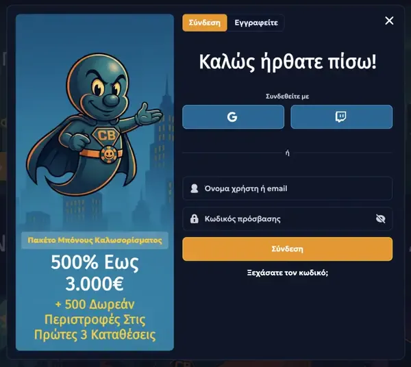 Το sportsbook μας περιλαμβάνει αγορές pre-match και live betting, ώστε να παρακολουθείτε αγώνες καθώς αλλάζουν οι αποδόσεις. Το Sportsbook Welcome Bonus είναι 100% έως €300, και μπορείτε να βρείτε τους ακριβείς κανόνες τζίρου και τα χρονικά όρια στους όρους του μπόνους πριν επιβεβαιώσετε. Για ομαλή αρχή, χρησιμοποιήστε πρώτα το ταμείο και μετά ανοίξτε το sportsbook και κάντε opt-in από την περιοχή προσφορών.